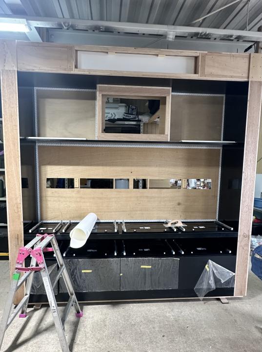 こんにちは、Be,想空間です。 今回も別注什器製作しました!! なぜか黒色ベースの什器が多いよねと話していたところ(笑) 今回も黒です!! シックな感じで私は好きです。 ここからクロスを張りディスプレイをつけていきます。 家具だけではなく、店舗の什器もぜひお任せください!!! 京都では祇園祭り真っ只中です✨ 水分補給はしっかりとまだまだ続く暑い夏を乗り越えま