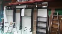 今日も什器の組み立てとなってます。 ゴールデンウィーク後の現場ですので、 皆さまに無理行って特急で頑張っています。 一ミリの仕事ですので、付けても外しの連続です みんな頑張ってください。