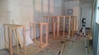 本日は間仕切り工事 軽鉄を建て各 扉 窓枠を付けていきます。 仕込み配線等がすんだらボードを張っていきます この時点で部屋の大きさなどが分かってきます。
