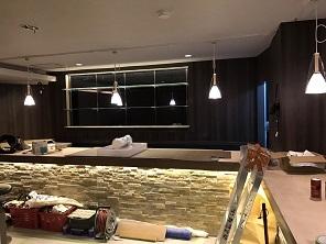 新規お客様状況です 祇園にある飲食店ですが、現状オープンされています 店舗をリニューアルオープンと言う事で提案させて頂き 改装工事進めています。 店のイメージを変えるため、色 クロス などを 変えるのと同時に 照明器具 カウンター下タイル貼 などで ゴージャスなイメージをを出すようにしています。